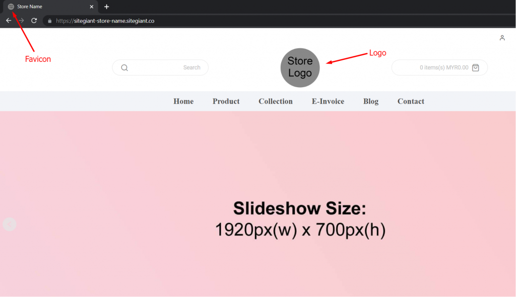Step 2: Under the Webstore Business Info section, upload the Favicon and Logo based on the required size and format > Save.