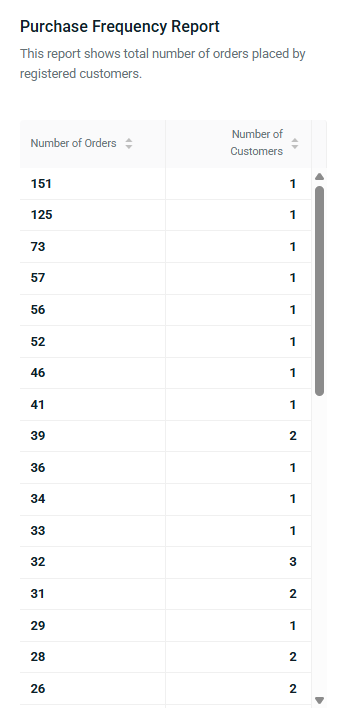Step 2: You can click on the Purchase Frequency Report listing to view the related customer details.