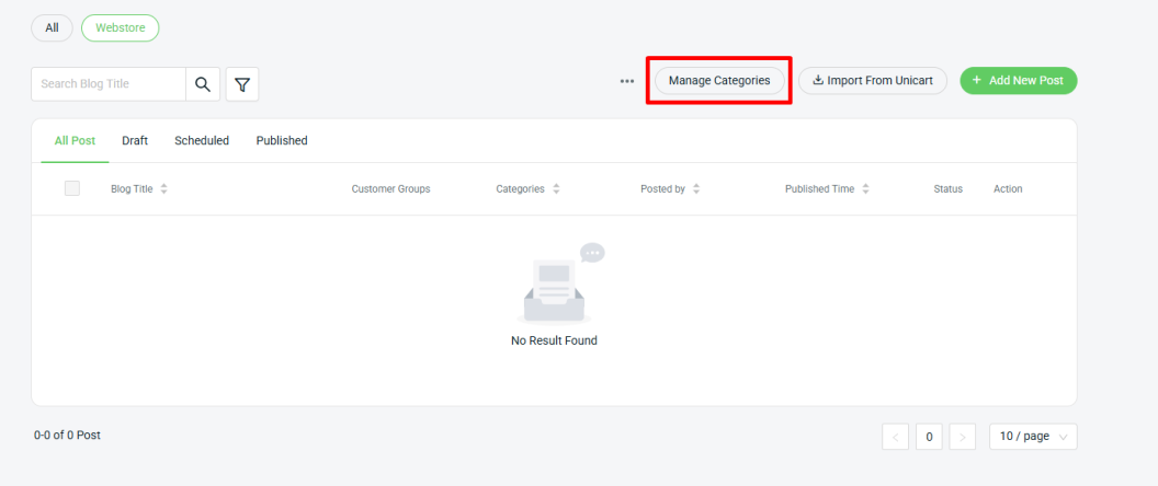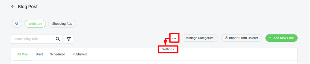 Step 1: Navigate to Webstore on the sidebar menu > Blog Post.