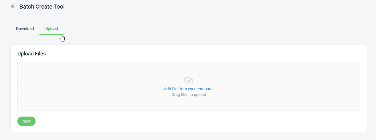 Step 4: Back to SiteGiant Batch Create Tools page > go to Upload tab > click Add file from your computer > Upload File > Next.