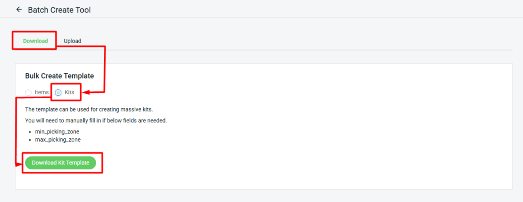 Step 2: Under the Download tab, select Kits > Download Kit Template.