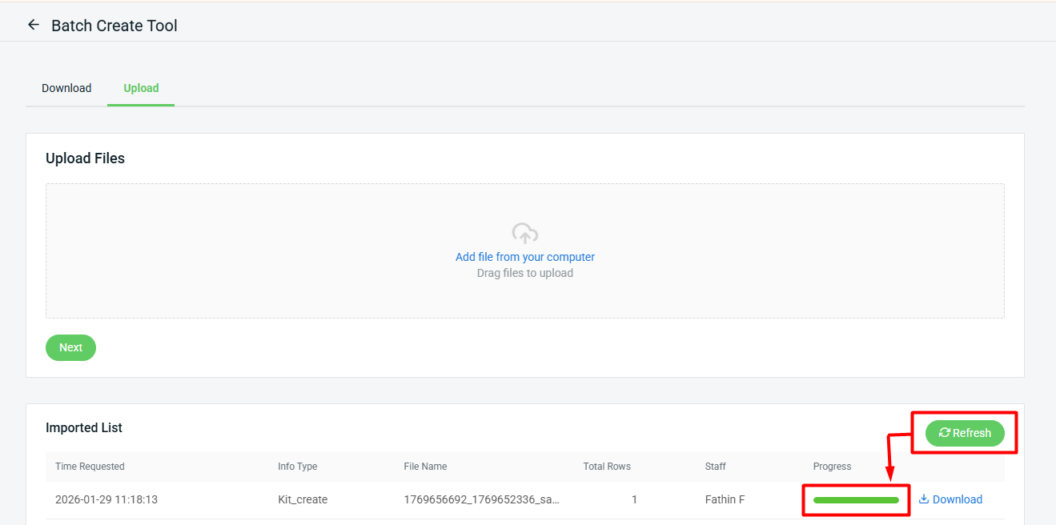 Step 6: Click Refresh after a while. The data is successfully imported when the progress bar turns green.