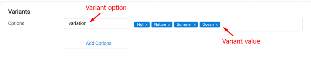 Step 9: As for the product that enables variant toggle, it will have a variation section. Insert your product variant name and variant options accordingly. You can click on the square box to insert the variant image.
