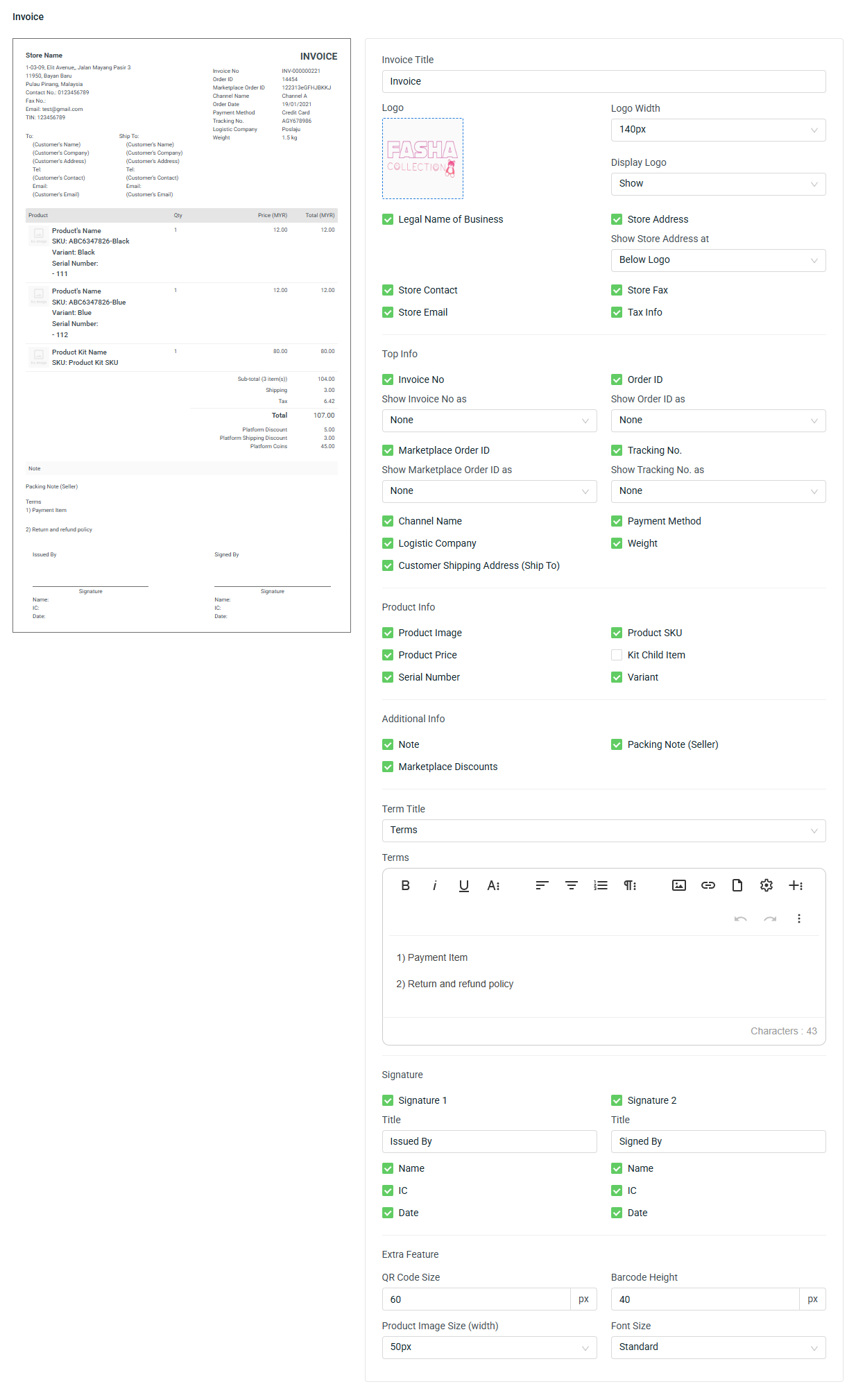 Step 3: Click Save button > keep the Apply status ON to apply the customized document template.