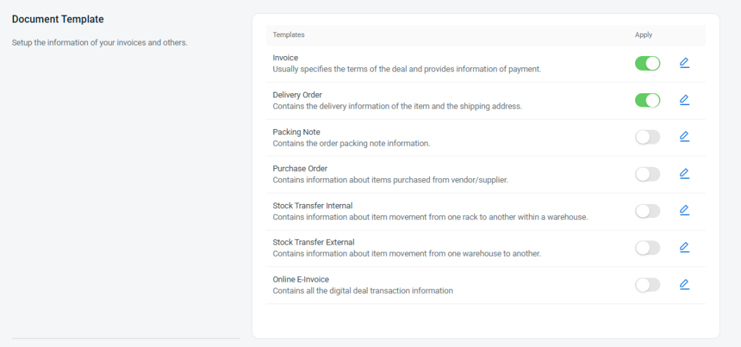 Step 4: You may set and configure the templates of the store’s Document Template.