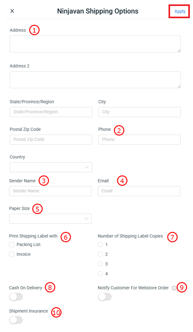 Step 5: Update the Ninjavan Shipping Options details > click Apply.
