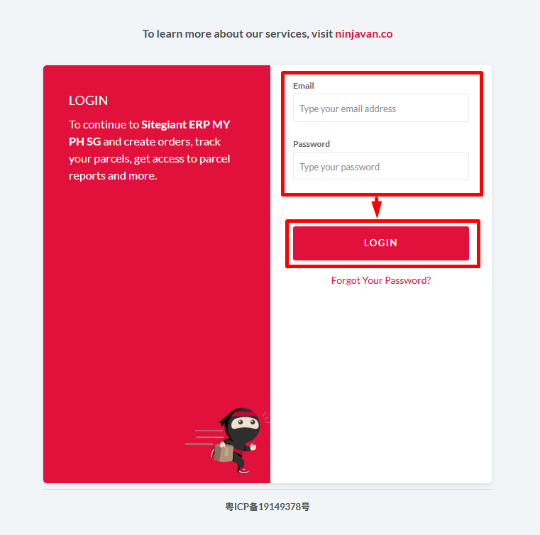 Step 8: Enter Ninjavan Login Credentials (Email address and Password) > Login.