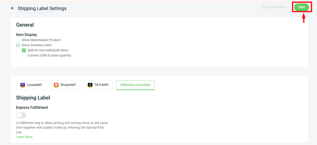 Step 10: Once done, click the Save button at the top right. Ninjavan has now been successfully integrated with SiteGiant!