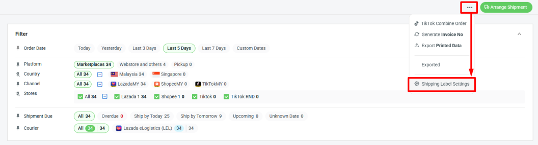 Step 4: Tick the Order(s) > Click Arrange Shipment.