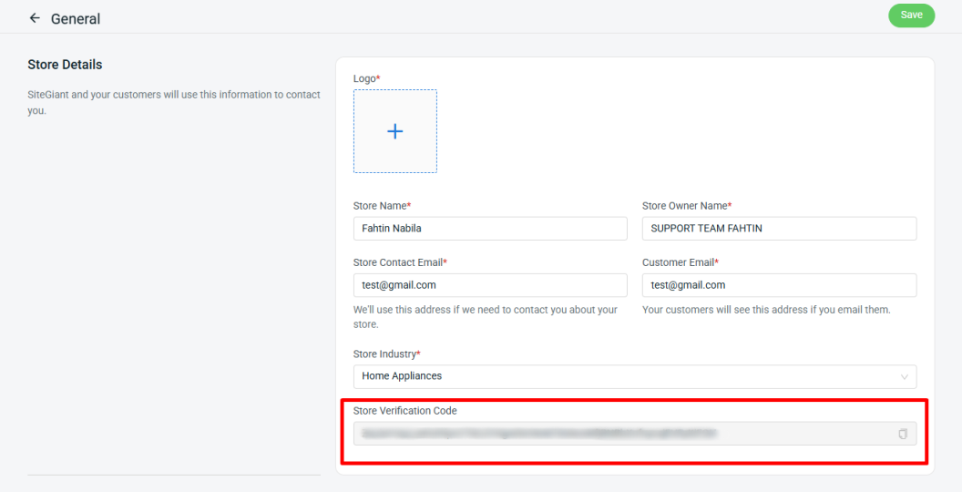 Step 2: Go to the Store Details section > copy Store Verification Code.