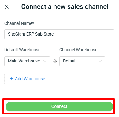 Step 3: Set the Channel Name > link the Warehouse > Connect.