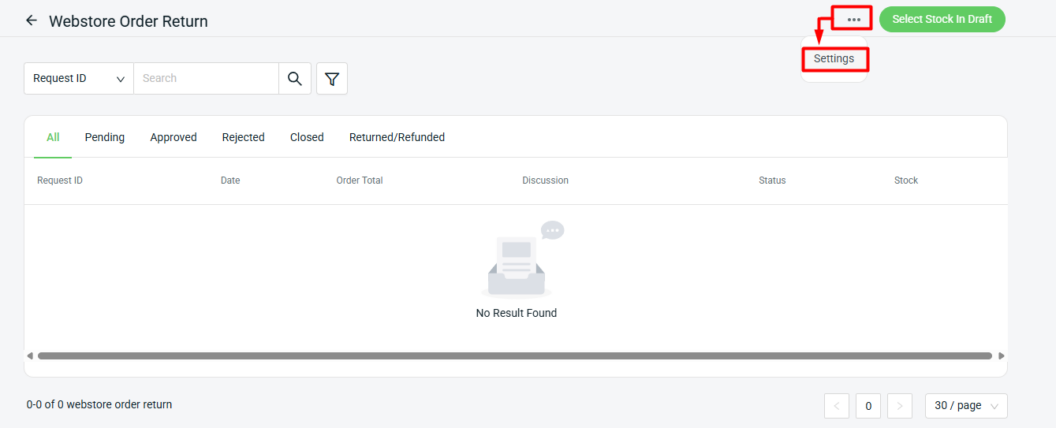 Step 4: Then, go to Orders > Order Return > Manage Webstore.