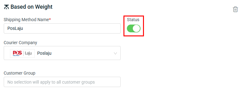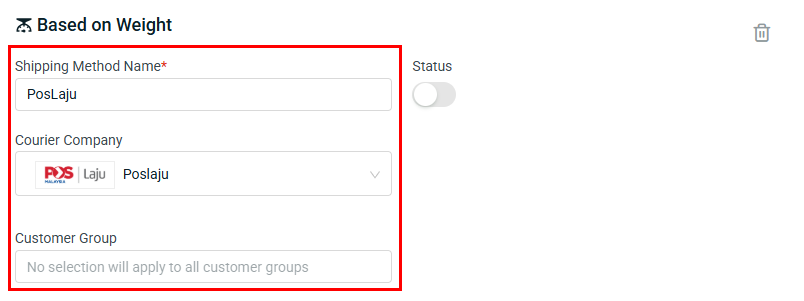 Step 2: Fill in the Shipping Method Name and select a Courier Company > select the Customer Group that is applicable for this shipping method (if no selection it will apply to all customer groups).