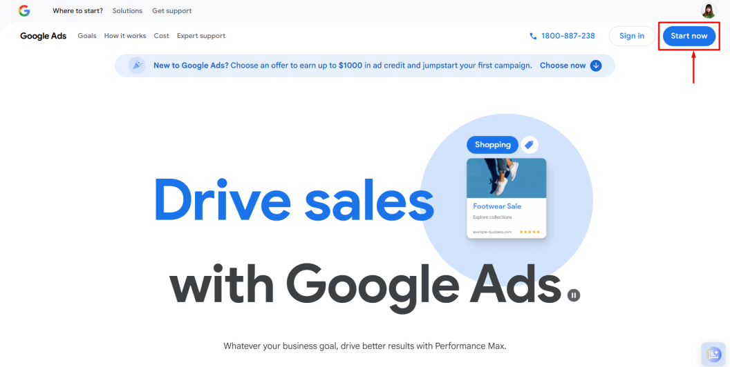 Step 1: Sign in to Google Ads with your Gmail Account > click Start Now.