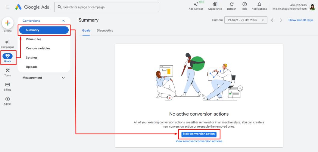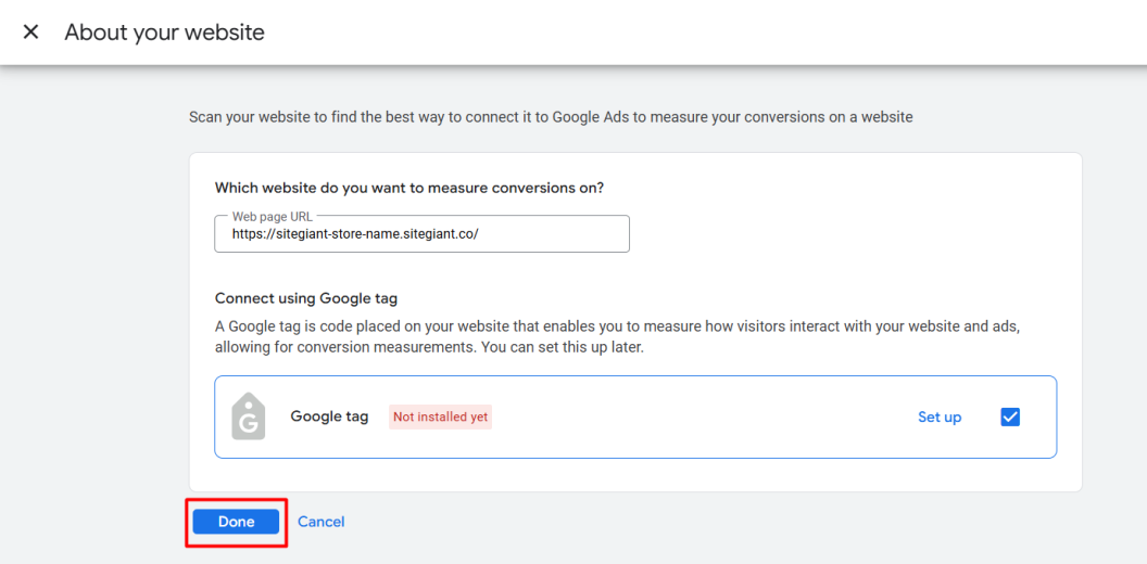 Google Ads Conversion Tracking is an effective tool that helps you monitor key user actions on your SiteGiant webstore after interacting with your ads. This valuable data empowers you to optimize your campaigns and drive better sales performance.