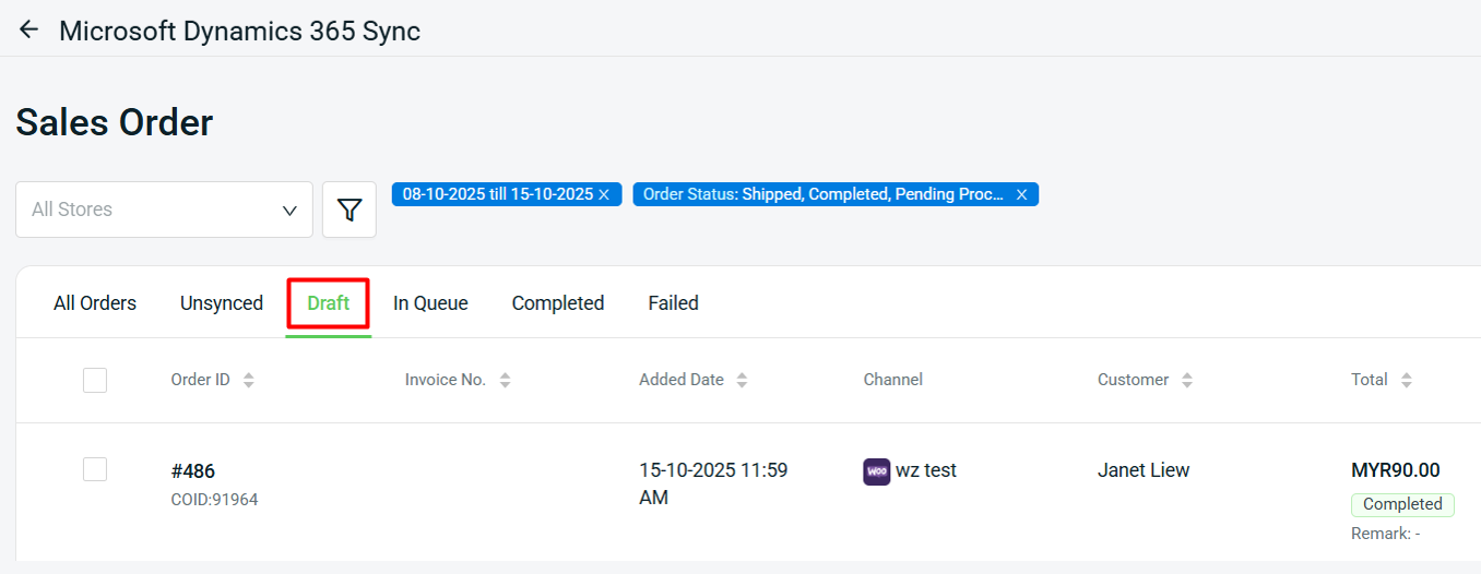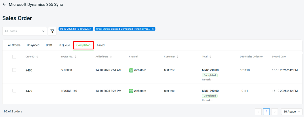 Step 5: Once the order is synced to D365, it will be moved to the Completed tab.