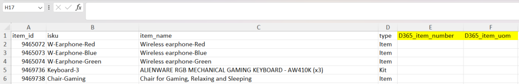 Step 4: Fill in the D365 item number and its corresponding UOM for all the items that you want to match with > Save the Excel file.