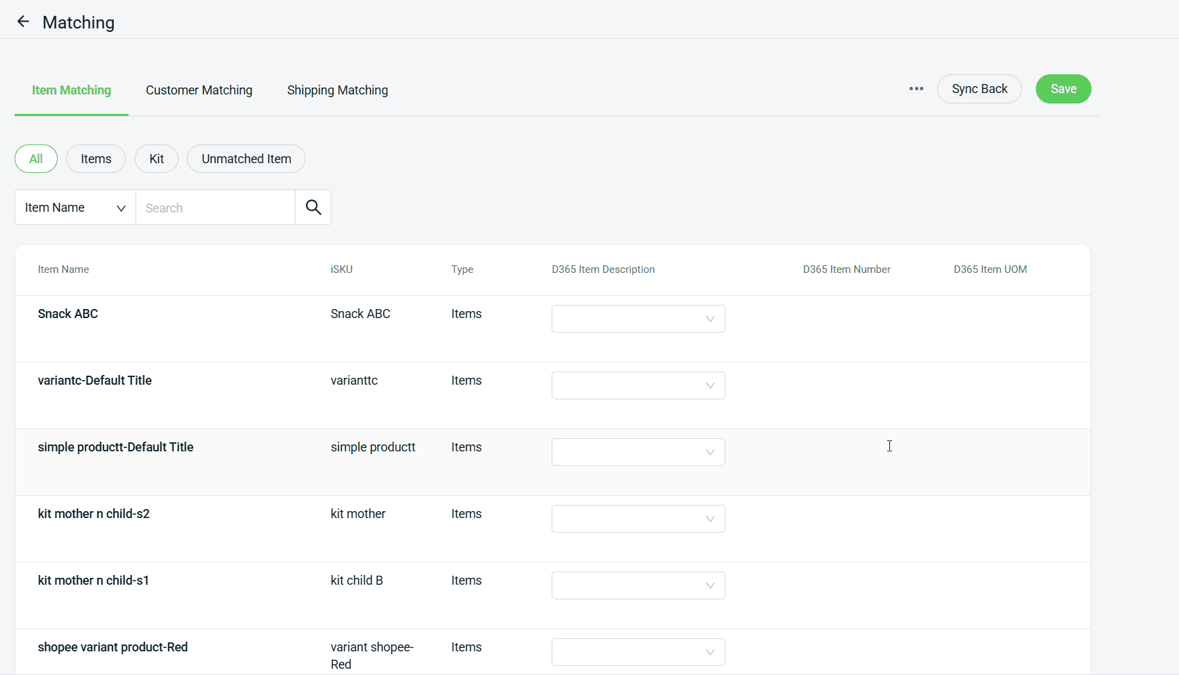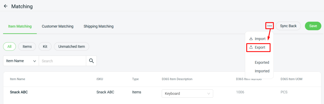 📌Note: Similar to the Item Matching tab, you can also sync back the latest data from Customer / Shipping Matching tab, if needed.