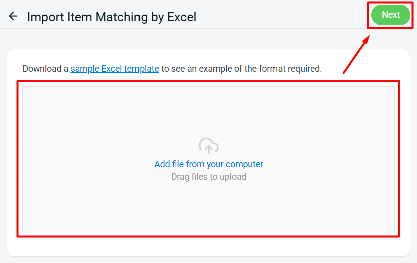 Step 6: Upload the previously saved Excel file > click Next.