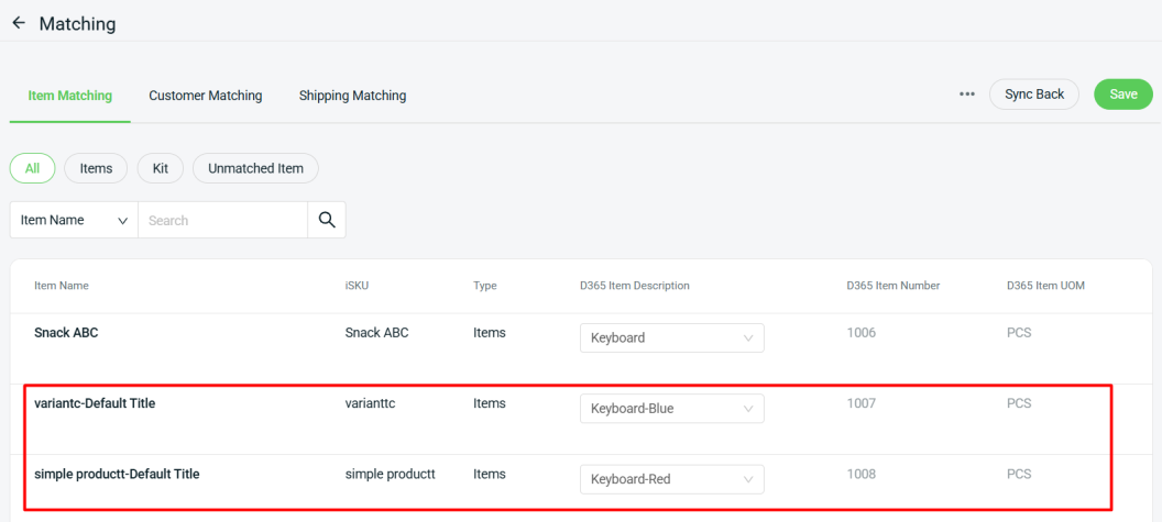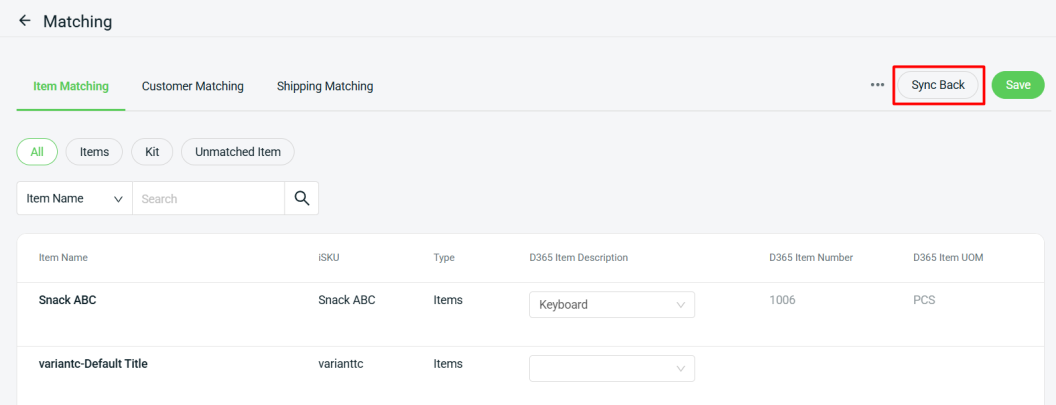 📌Note: You may click the Sync Back button to retrieve the latest item update from D365.
