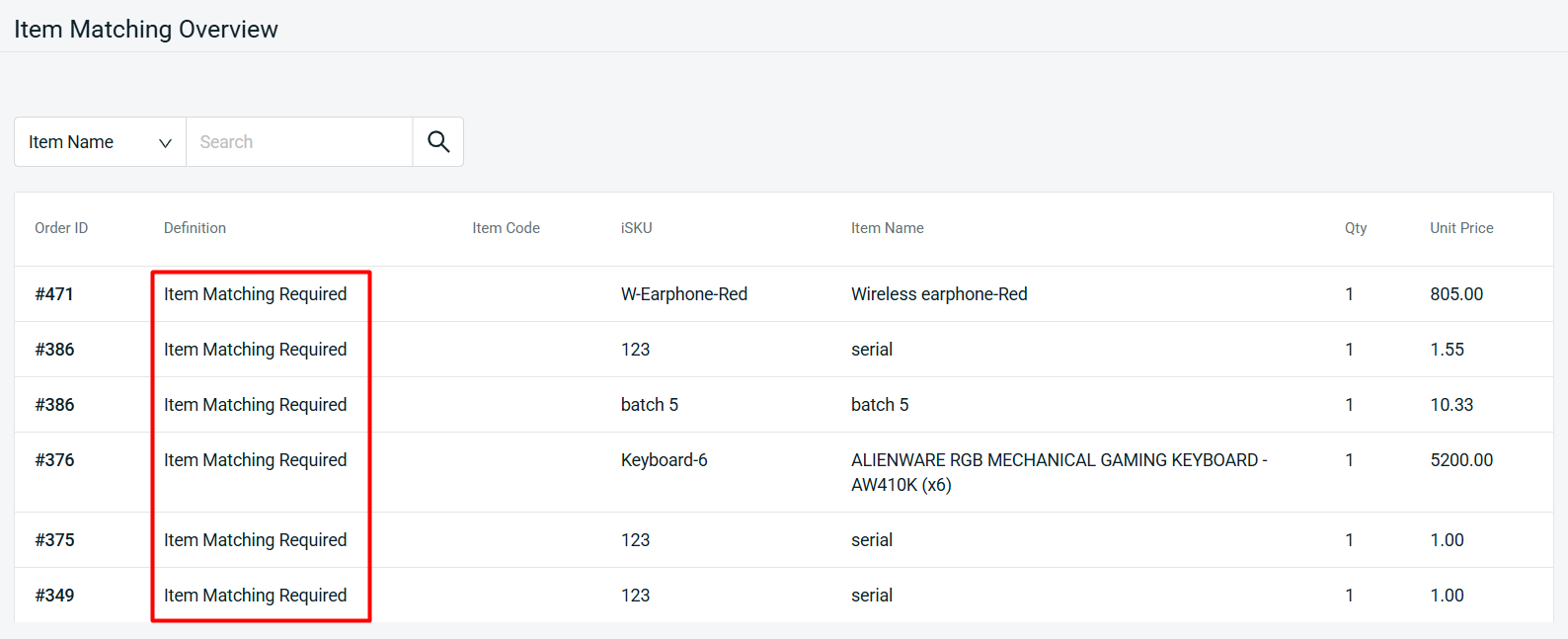 Step 8: Refresh the Item Matching tab to see the latest changes reflected.