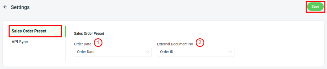 Step 3: Select your Sales Order Preset option > Save.
