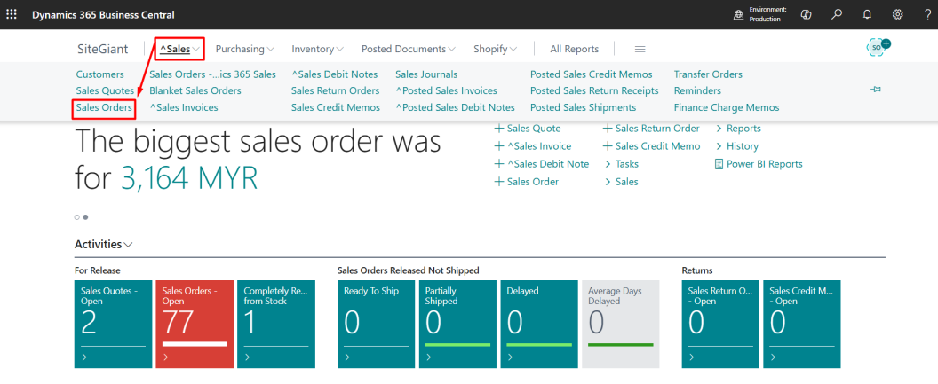 Step 1: Login to your D365 account > click ^Sales > Sales Orders.
