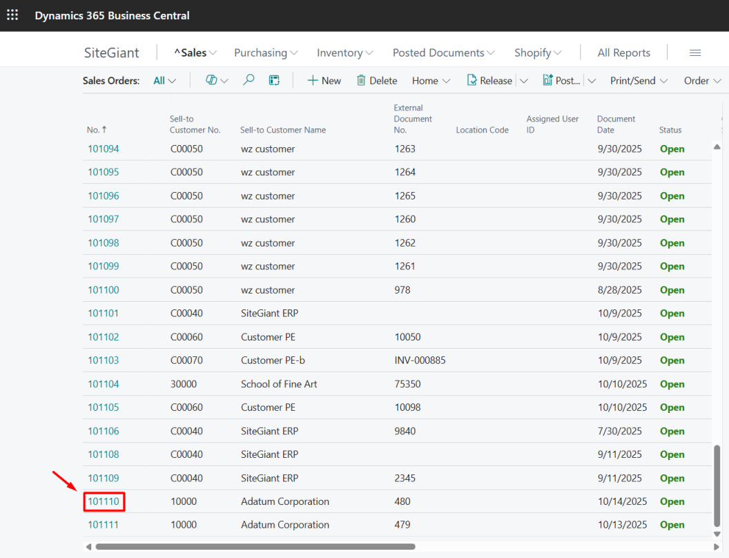 Step 2: Click into any Sales Order No. synced from SiteGiant.