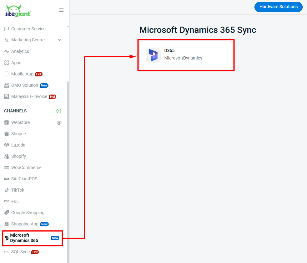 📌Note: If your Sales Channel quota in SiteGiant is sufficient, you can add more than one D365 account by clicking + Add New Sales Channel.