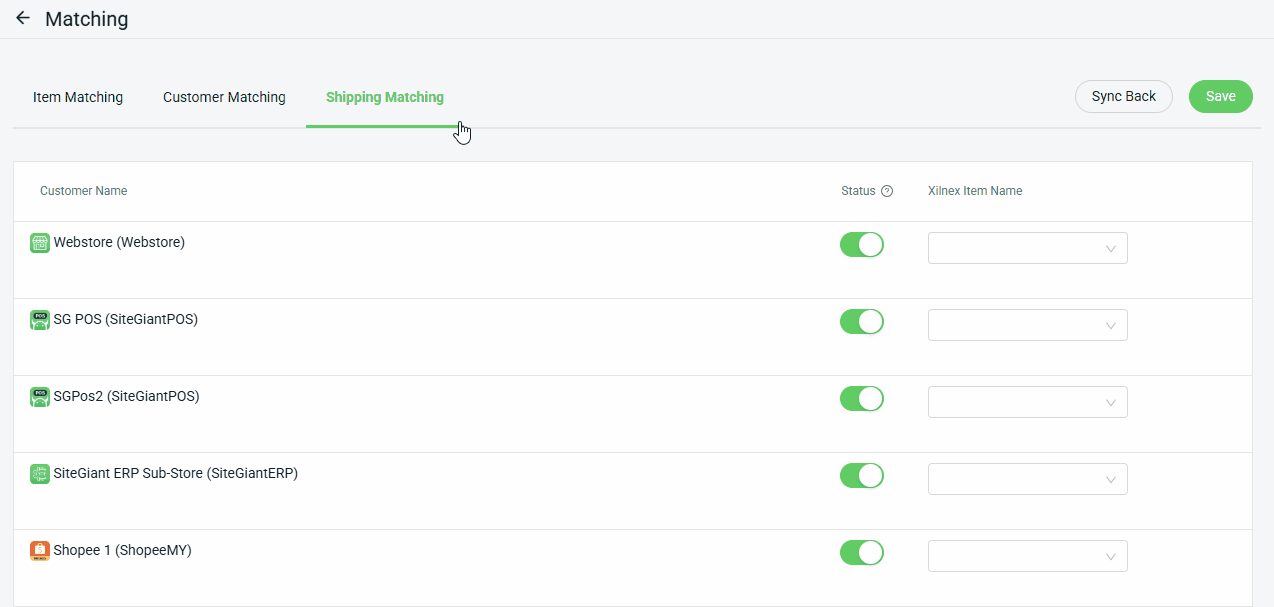 📌Note: All shipping statuses are enabled by default. You can choose to disable any status for a sales channel if you do not want its shipping fees to sync to Xilnex.
