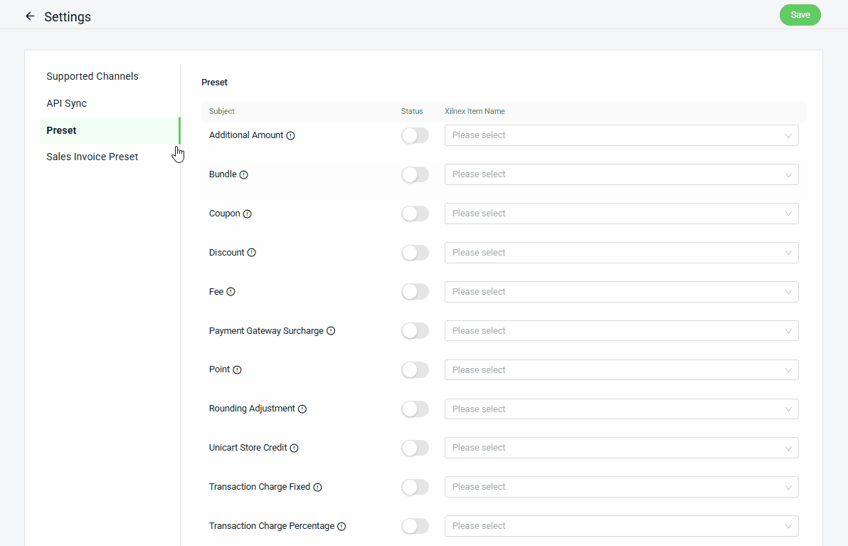 Step 1: Toggle On the Preset button if you want the update to be reflected on the invoice > mapped with the Xilnex Item Name list > Save.