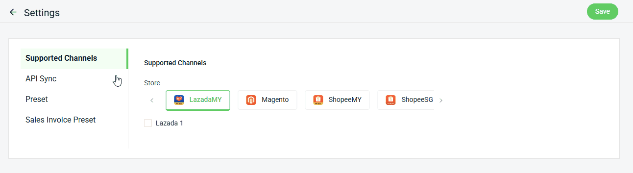 Step 1: Select the Supported Channel you want to sync the invoice with Xilnex > Save.