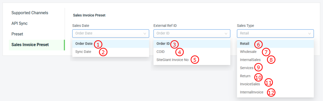 Step 1: Select the Sales Date, External Ref ID, and Sales Type as the default setting for the invoice.