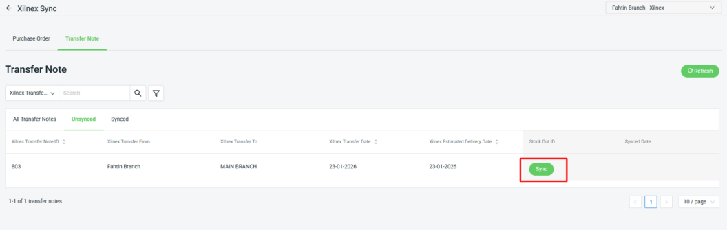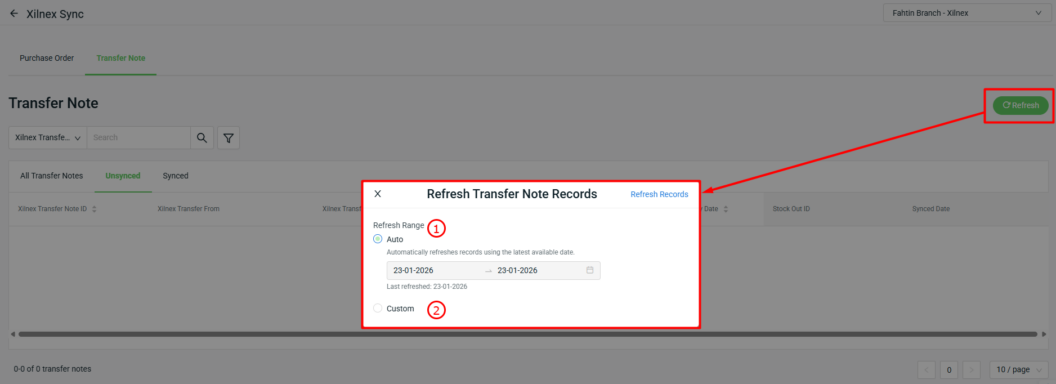 Step 3: Click Refresh to update and retrieve the latest Transfer Note from Xilnex.