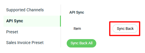 Step 2: Click the Sync Back button to retrieve the latest product update from Xilnex accounting.