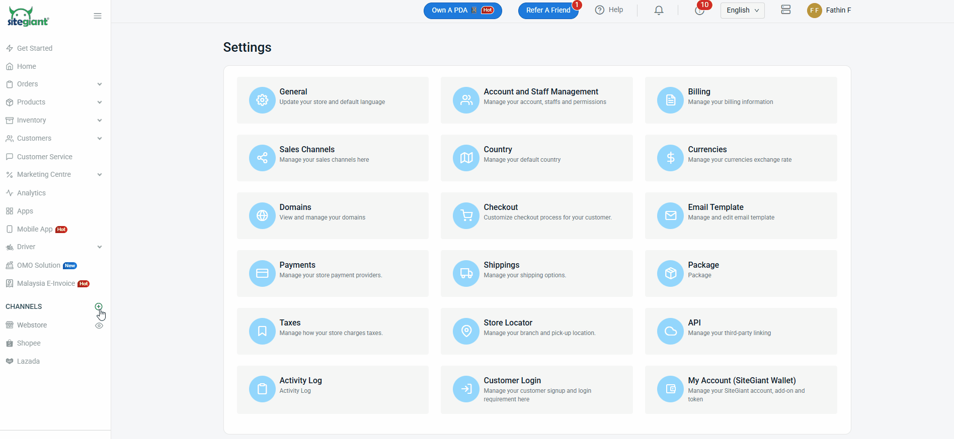 ⚠️Important: Once the products are linked with inventory items, all the stock adjustments must be performed through SiteGiant. Please make sure the Update Stock button is toggled on for the related sales channel. It can be configured by navigating to + Channel on the sidebar menu > Authorized Channel > click Gear Icon > enable Update Stock > Save.