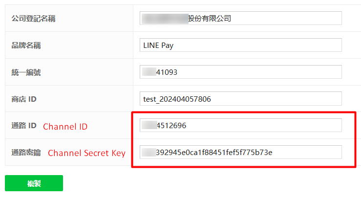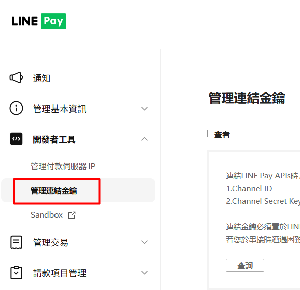 4. 密鑰*LINE Pay 後台的通路密鑰