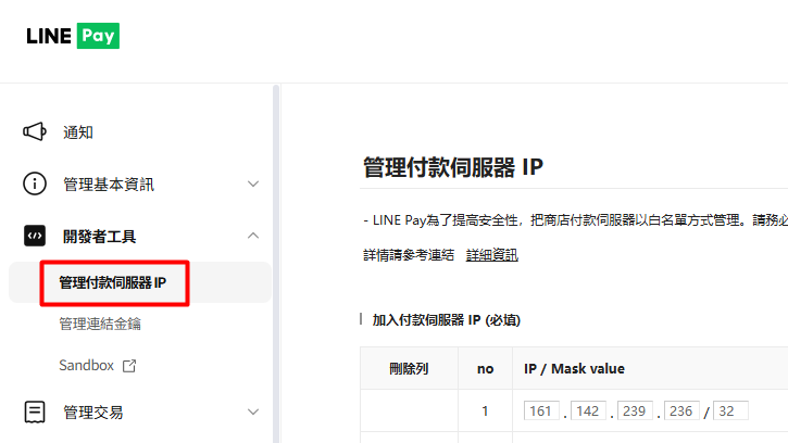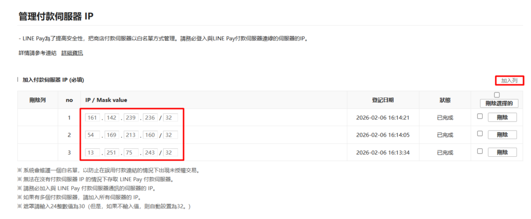 步驟三:添加付款伺服器 IP (需加入所有的 IP)