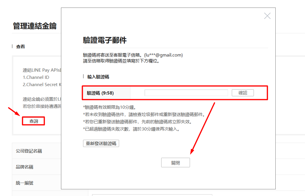 3. 驗證金鑰*LINE Pay 後台的通路ID
