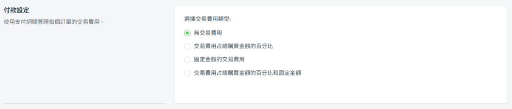步驟四: 您可以在付款設定中設置額外的交易費用(選擇性)