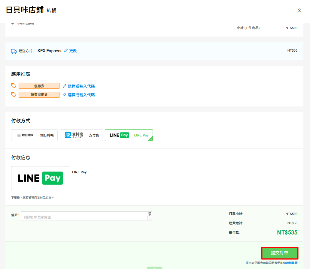 4. 測試使用 LINE Pay 結帳(客戶角度)