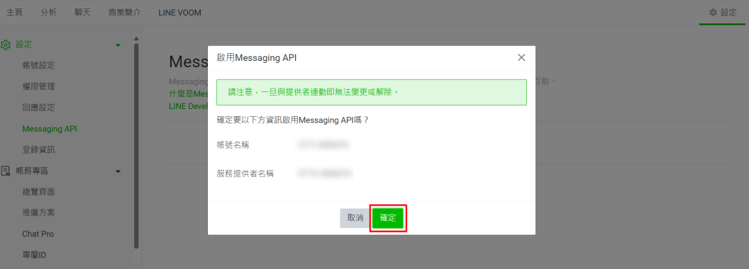 2. 啓用 Messaging API 的設定步驟