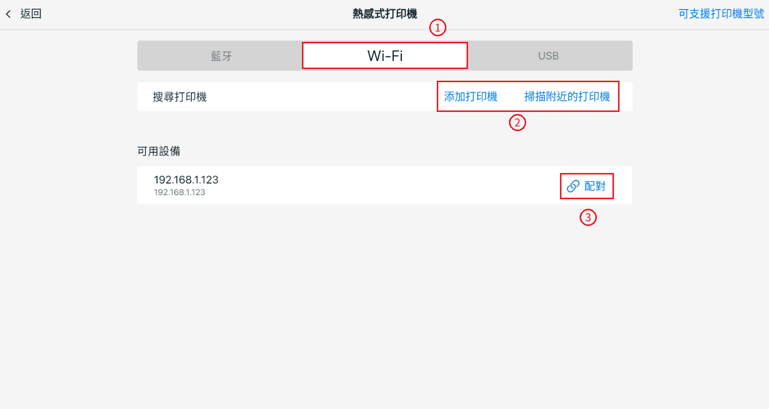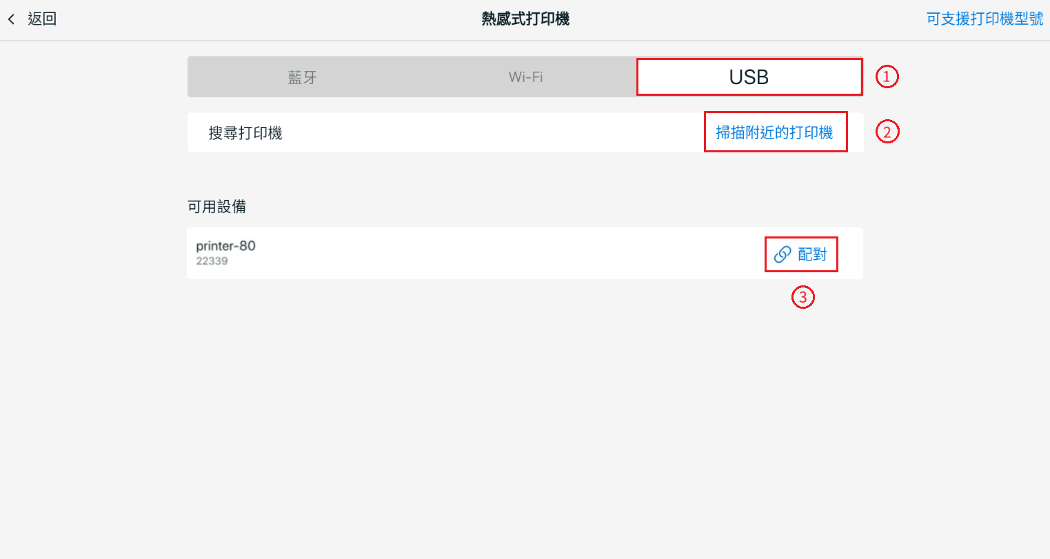 📌注意:USB 打印機僅支援 Android 裝置。