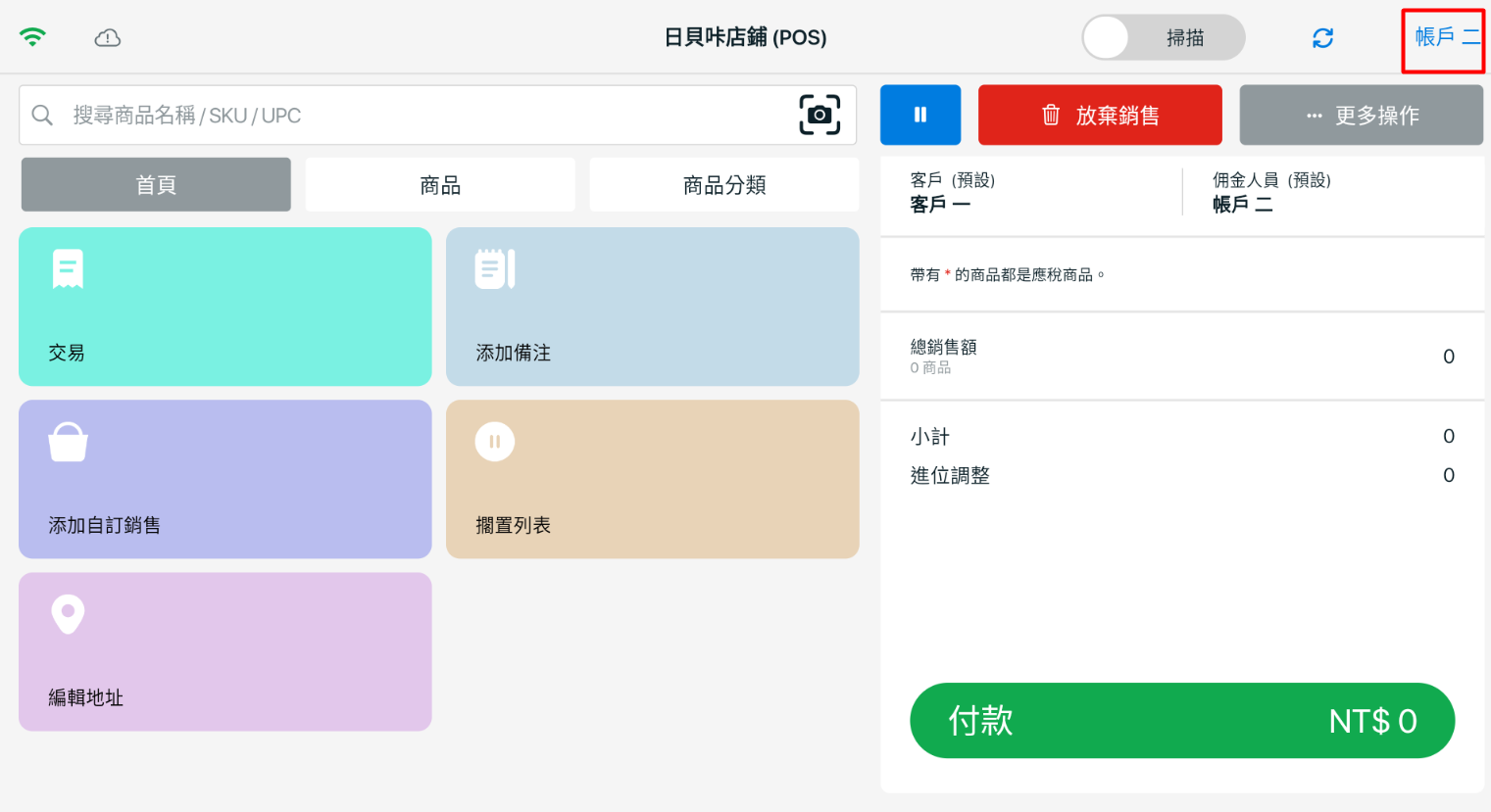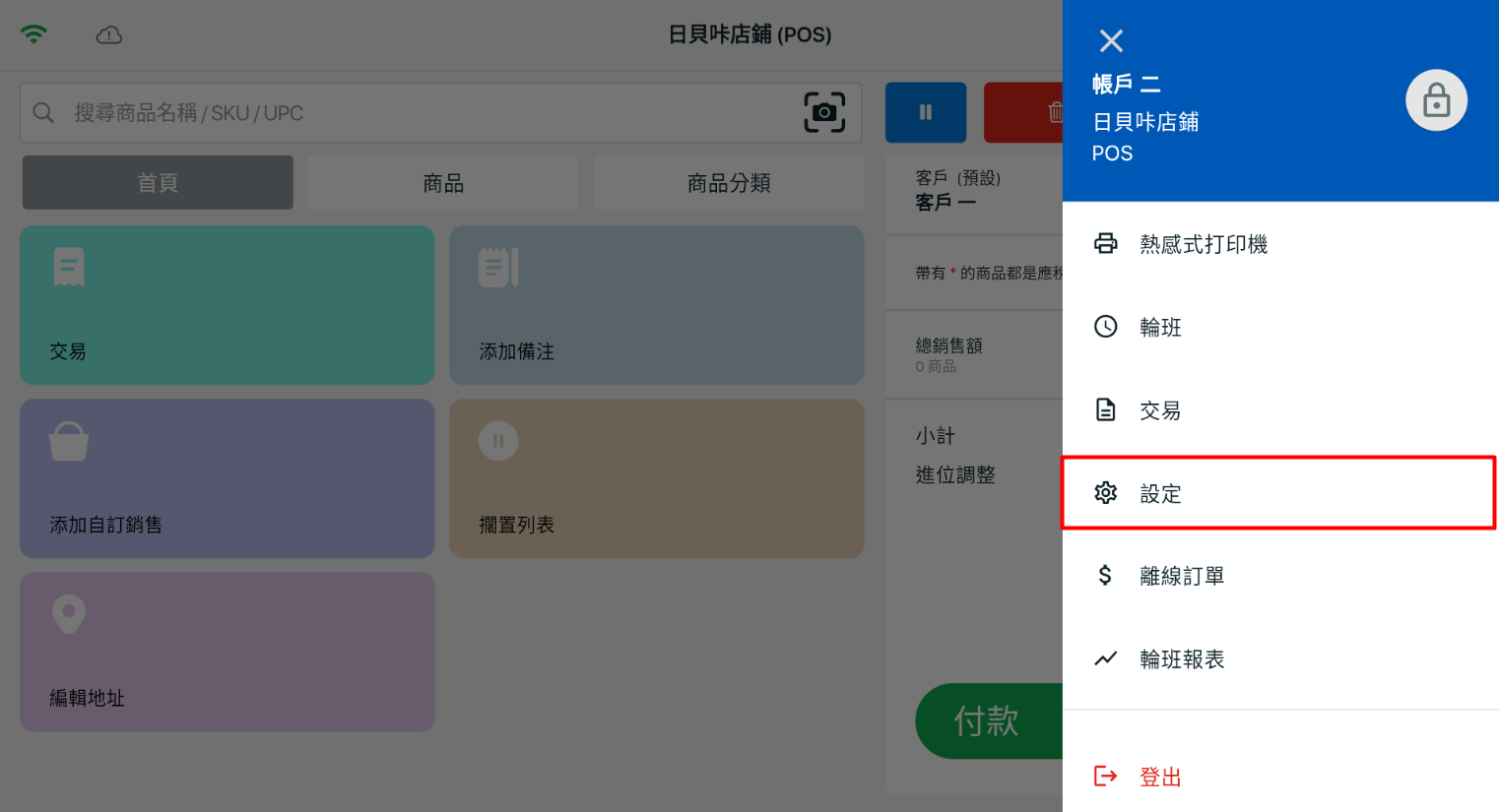 步驟一:在您的裝置上登入 SiteGiant POS > 點擊右上角的使用者名稱。