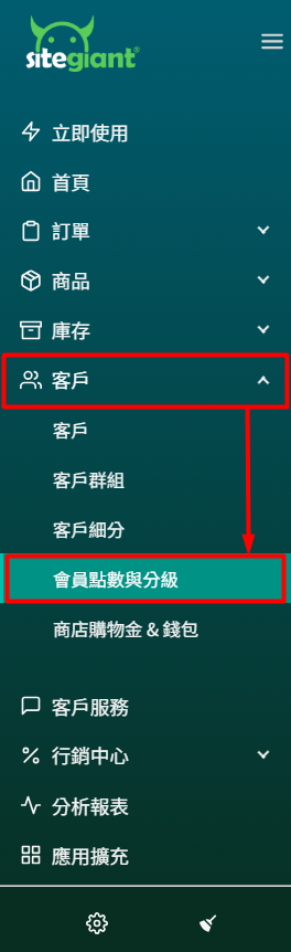 步驟一:於側邊選單中點擊客戶 > 點擊會員點數與分級