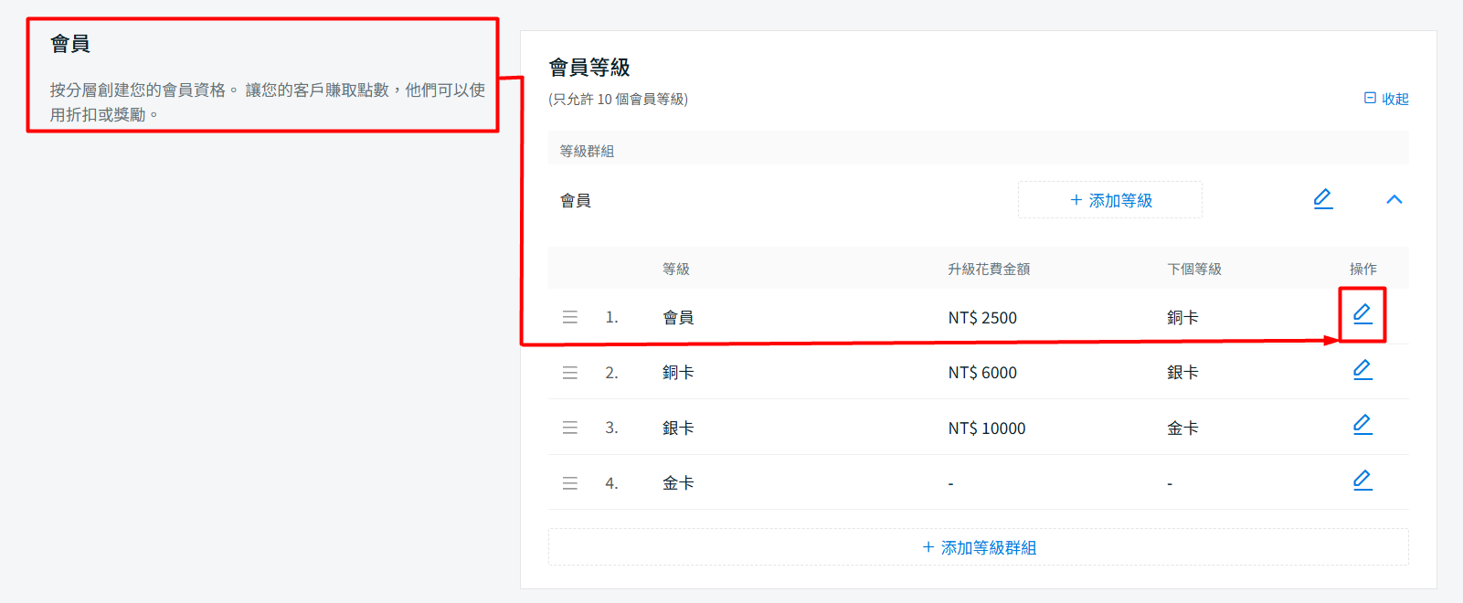步驟二:前往會員部份 > 點擊編輯按鈕。