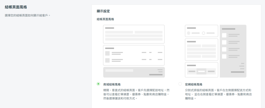 此設定可讓您選擇呈現給客戶的結帳頁面風格。