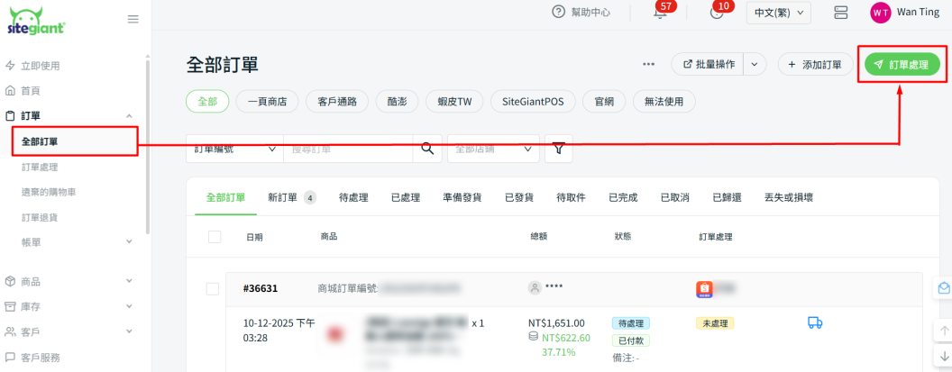 步驟一:前往全部訂單 > 訂單處理。