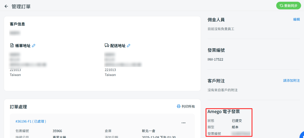 📌 注意:若銷售通路已在 Amego(光貿)公司簡介啟用相關設定並開啟自動提交訂單,但該筆訂單未經 SiteGiant 系統處理,則可至 Amego 帳號後台直接列印發票,或複製發票連結提供予客戶。