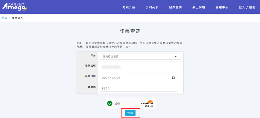 步驟二:掃描後,系統會自動導向到電子發票查詢頁面,發票資訊已為您預先填寫完成,您只需要點擊送出即可。